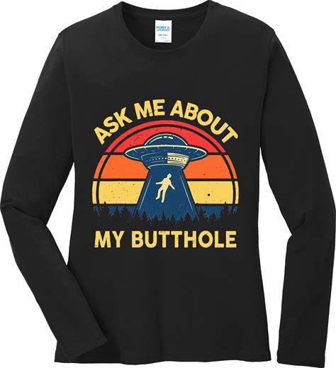 Ask Me About My Butthole Cute Alien Costume Adults Ufo Ladies Long Sleeve Shirt