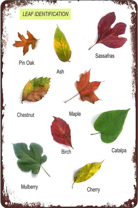 Leaves Name Identification Metal Poster Autumn Leaves Nature Science Tin Sign Wall Art Decor Plaque For Home Classroom Office Bedroom 8X12 Inch